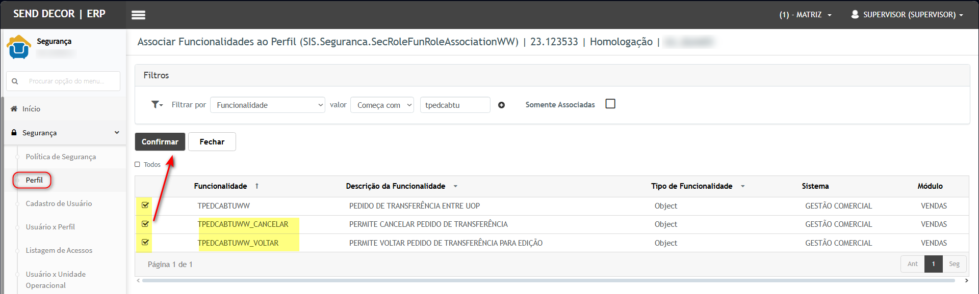 - Necessário o ambiente estar atualizado com a versão do módulo SendDecor de número 124091 ou superior;