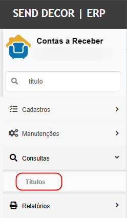 Após a aprovação do pedido, acessar Contas a Receber > Consultas > Títulos.