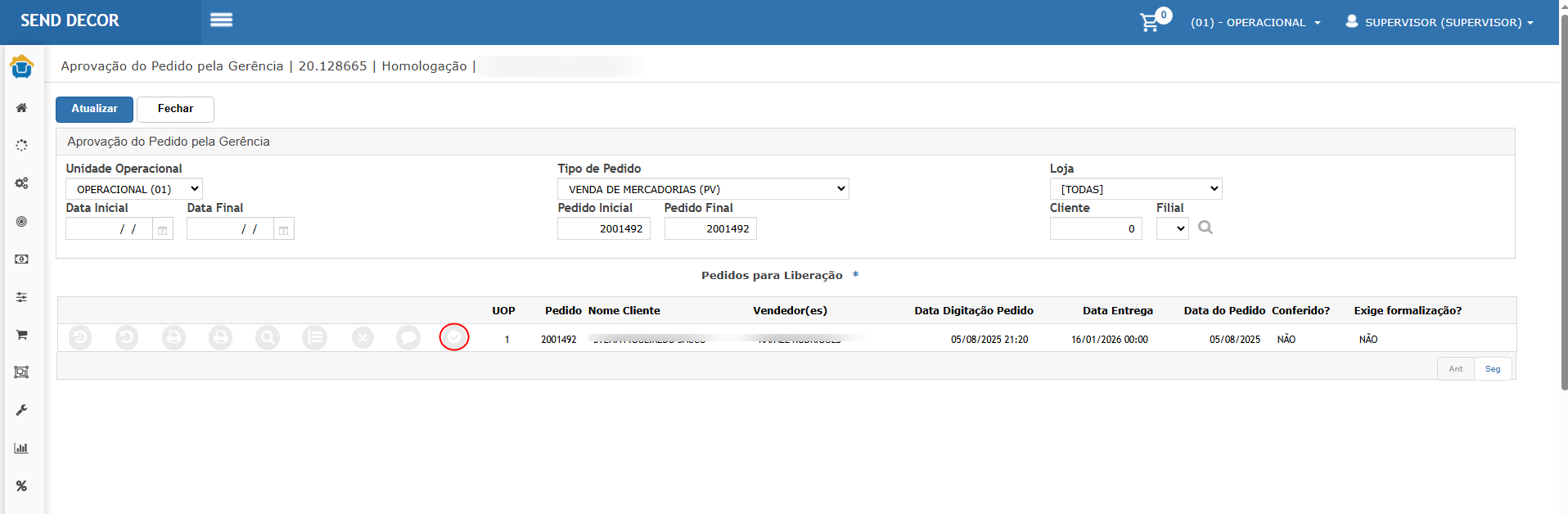 Acessar a tela Aprovação do Pedido pela Gerência.