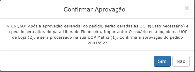 Acessar a tela Aprovação do Pedido pela Gerência.