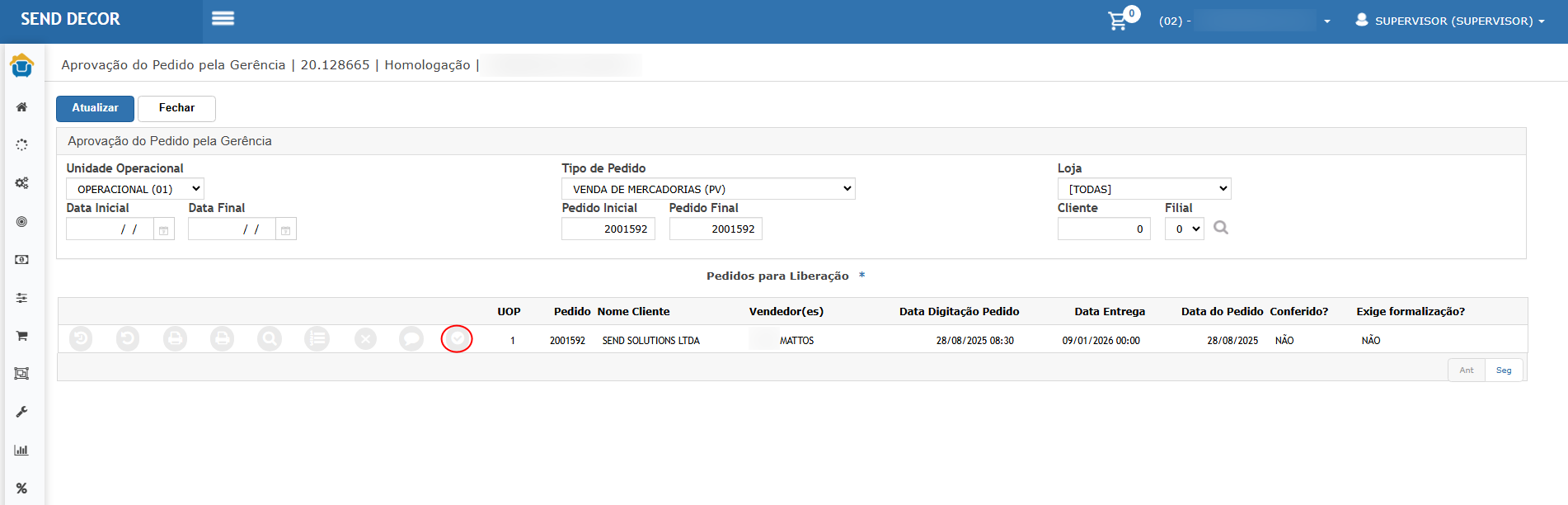 Selecionar o pedido e realizar a aprovação.