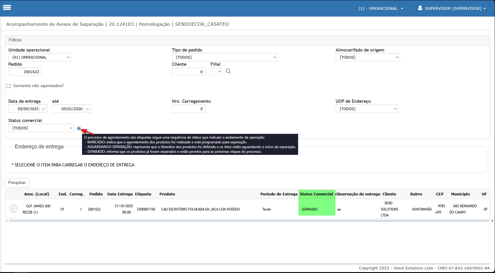 OS 91555 - MELHORIA - SIS/WEB - SENDDECOR - ACOMPANHAMENTO AVISO SEPARAÇÃO