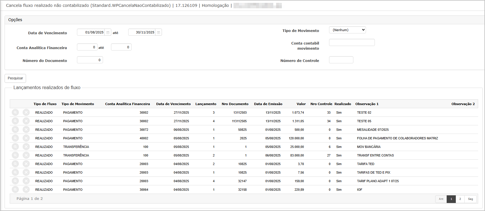 OS 91584 - CORREÇÃO - FLUXO DE CAIXA - TELA DE CANCELAR FLUXO REALIZADO NÃO CONTABILIZADO - PAGINAÇÃO E LENTIDÃO