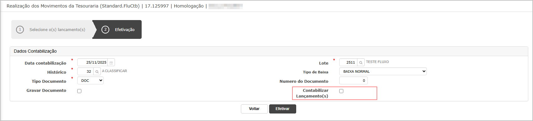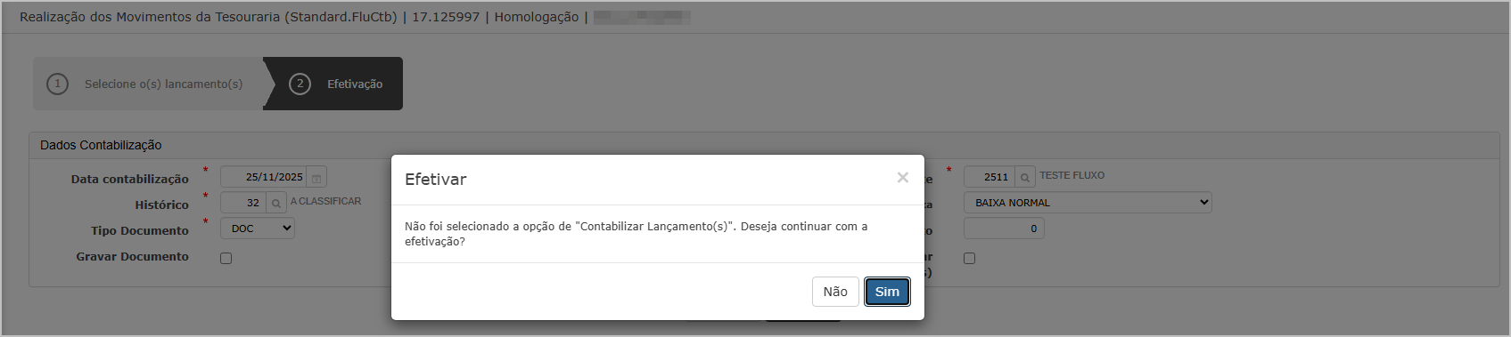 No passo de efetivação, não marque a opção Contabilizar lançamento e clique em Efetivar.