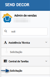 Acessar Adm. de Vendas → Central de Tarefas → Solicitação.