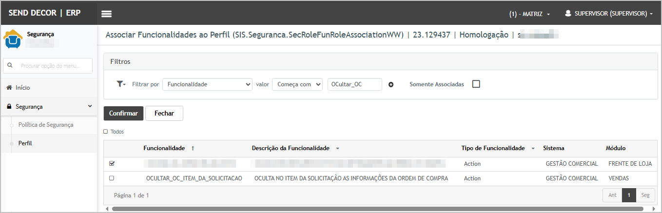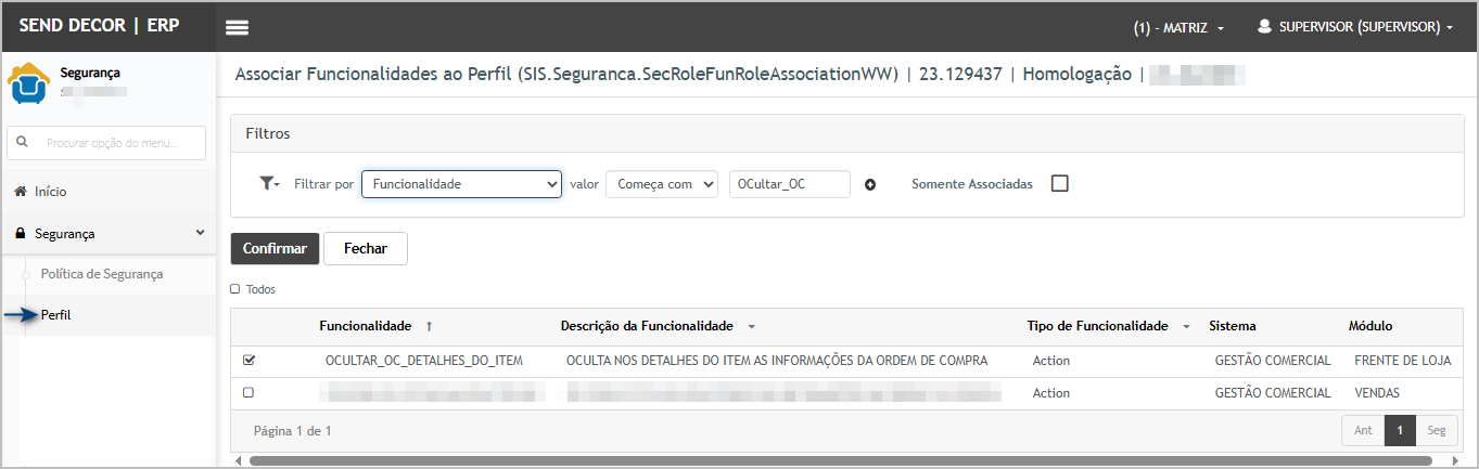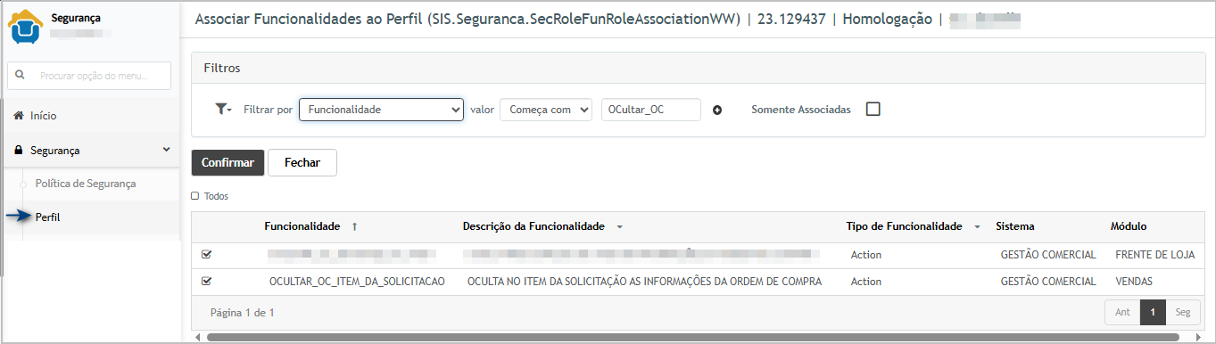 Premissa: funcionalidade OCULTAR_OC_DETALHES_DO_ITEM, deve estar desmarcada para o perfil de consultor.