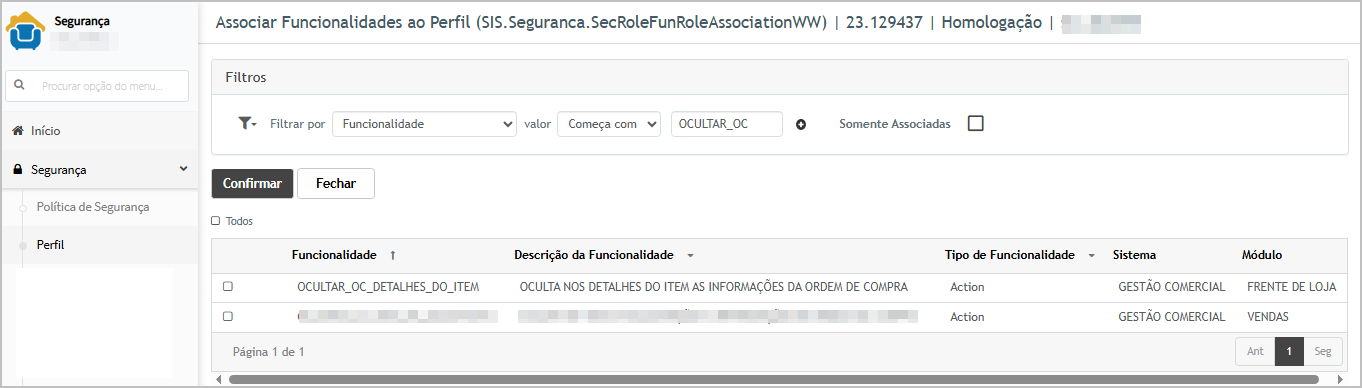 Premissa: funcionalidade OCULTAR_OC_DETALHES_DO_ITEM, deve estar marcada para o perfil de consultor.