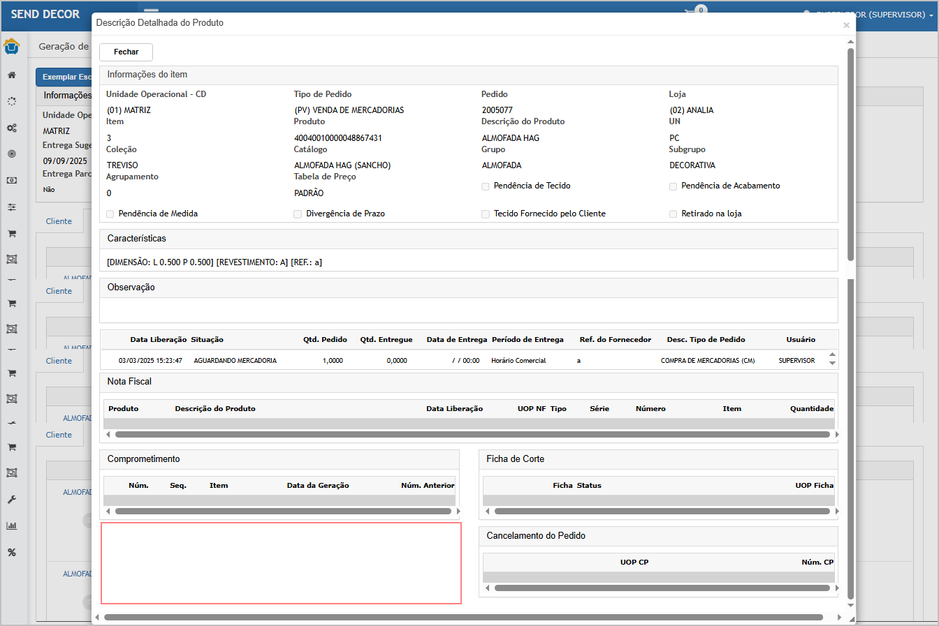 Painel/Seção “Ordem de Compra” no detalhe do item.