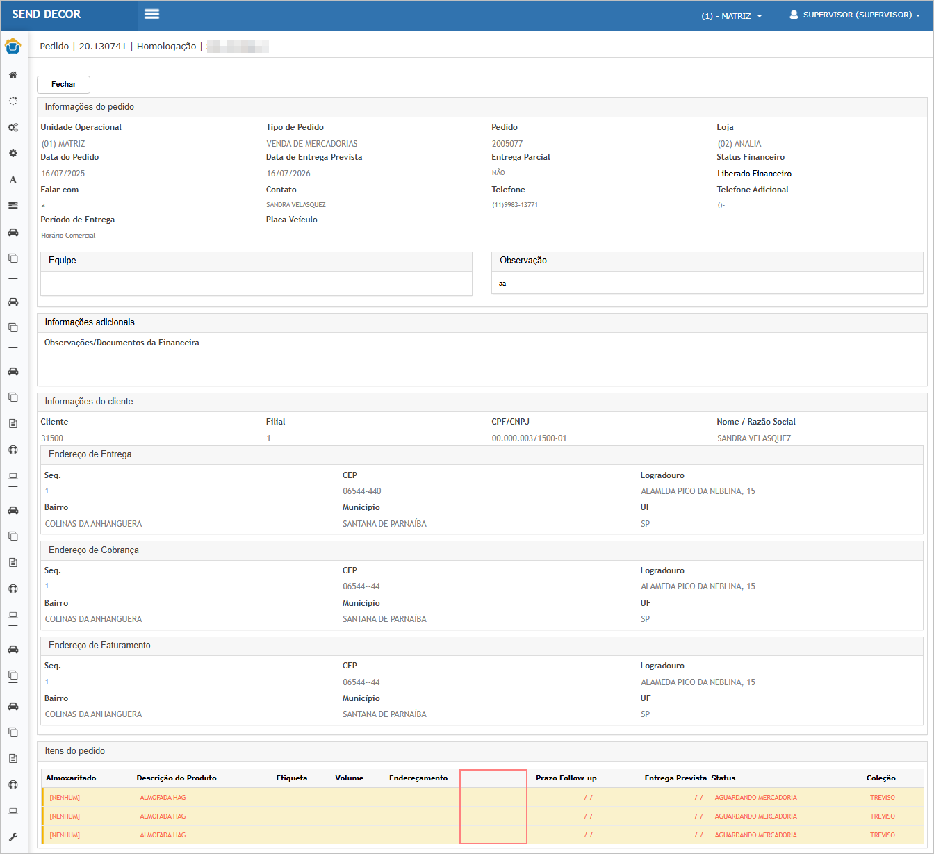 Executar Consultar Itens (pesquisar pelo pedido de teste).