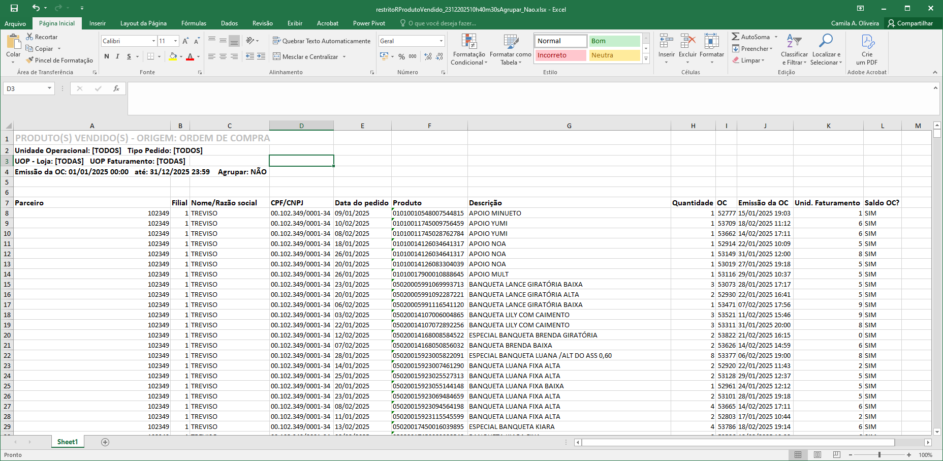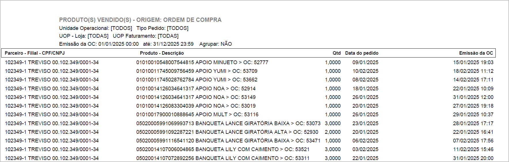A solicitação visa, adequar o relatório “Produtos Vendidos – OC” às necessidades operacionais e de controle de acesso, garantindo: