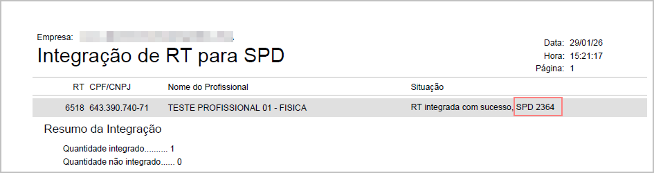 Após gerado o SPD certifique que os dados foram gravados corretamente.