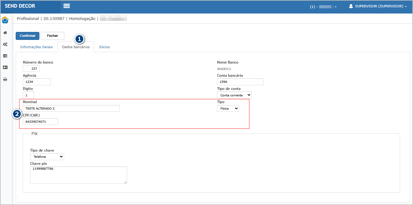 Reabrir o cadastro do Profissional e acessar novamente a aba Conta Bancária.