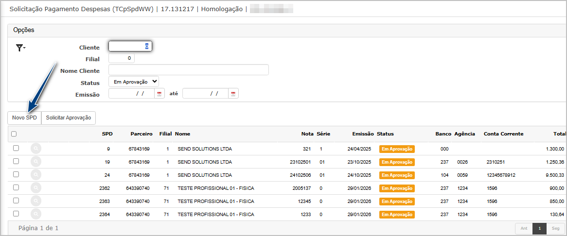 Objetivo: validar que, ao gerar/criar um SPD a partir do módulo Fidelidade, o sistema leva e/ou carrega corretamente os dados bancários do favorecido, incluindo CPF/CNPJ (e nome do favorecido, quando aplicável), sem exigir digitação manual no SPD.