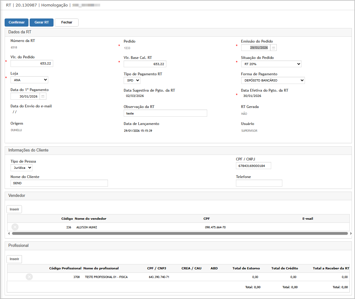 Clicar em Gravar/Salvar o cadastro do profissional.