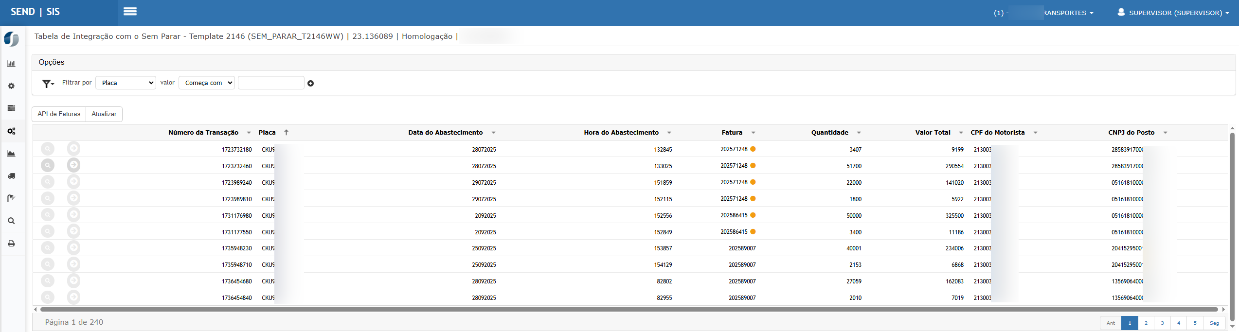 - o campo Data de Emissão corresponde à data de emissão informada pelo Sem Parar na integração.