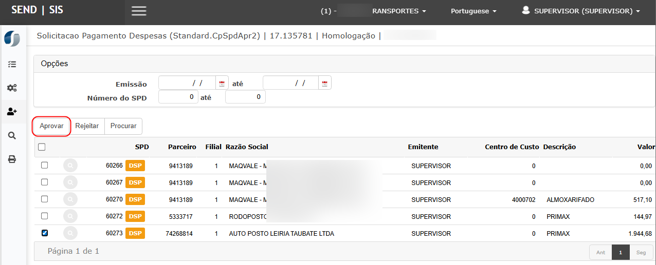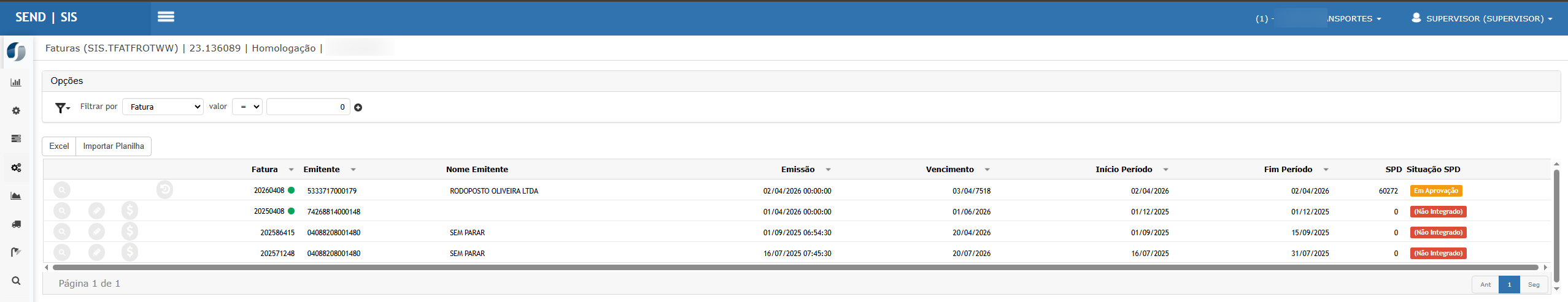 - Não havendo erros, a fatura deve ser integrada ao SPD.
