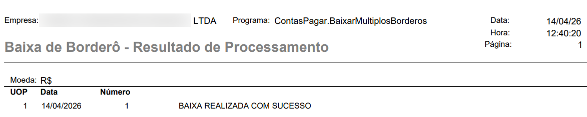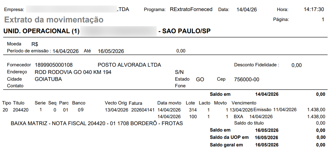 - O extrato deve demonstrar a movimentação da fatura baixada.