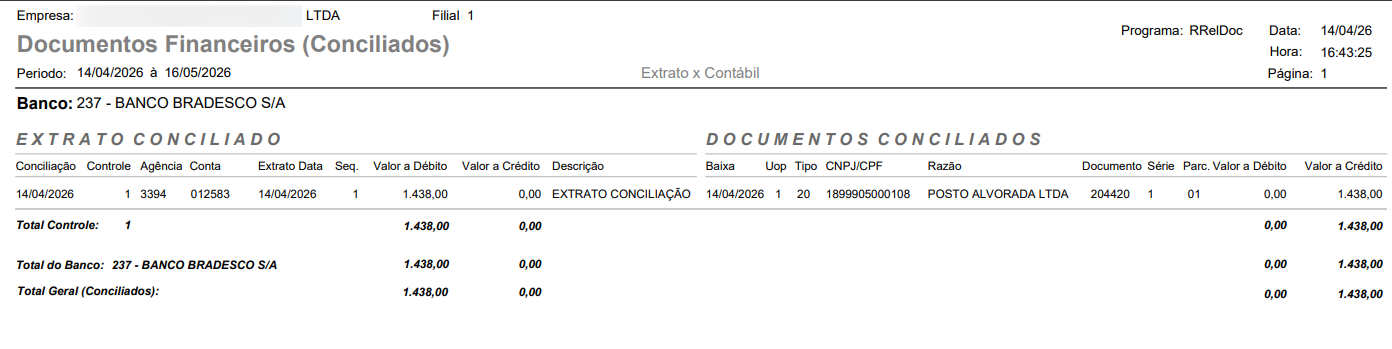- O extrato bancário e o documento financeiro devem aparecer vinculados.