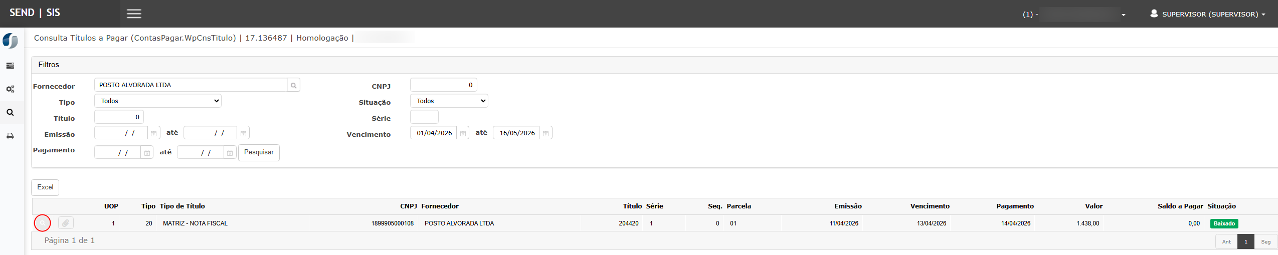 CENÁRIO 08 - Consultar fatura no módulo Contas a Pagar