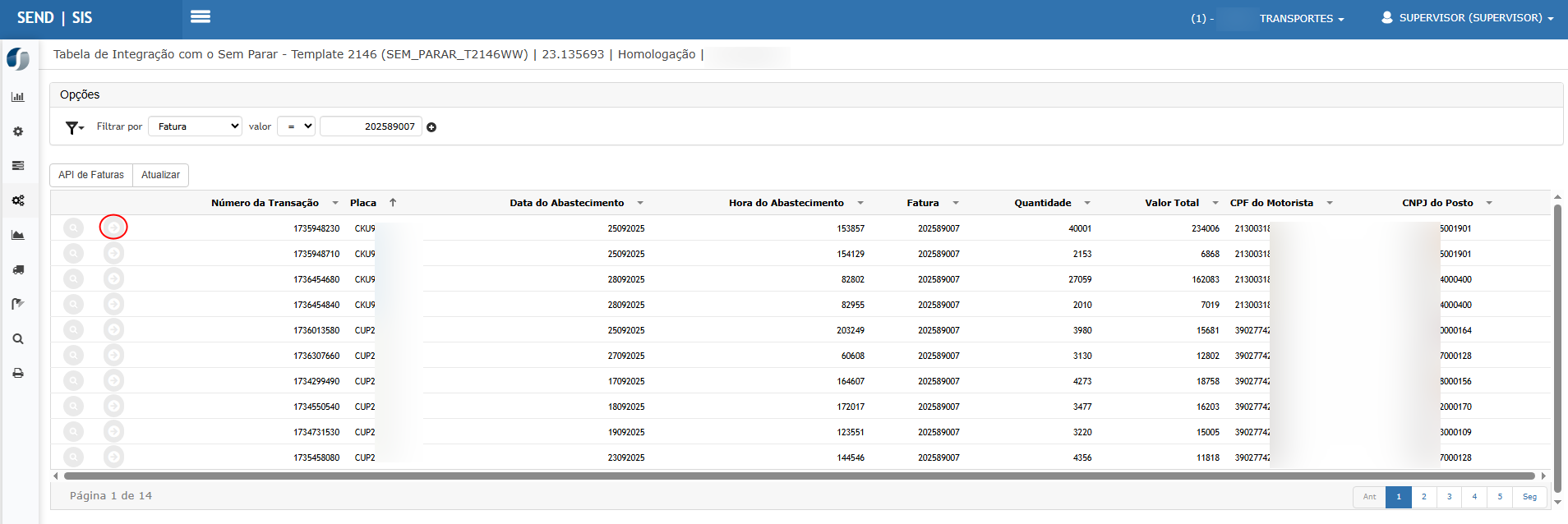 Após a integração bem-sucedida, a tela de consulta da fatura do Frotas deverá ser exibida.