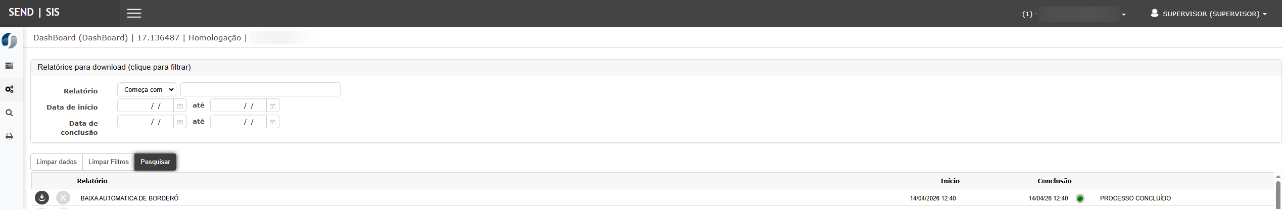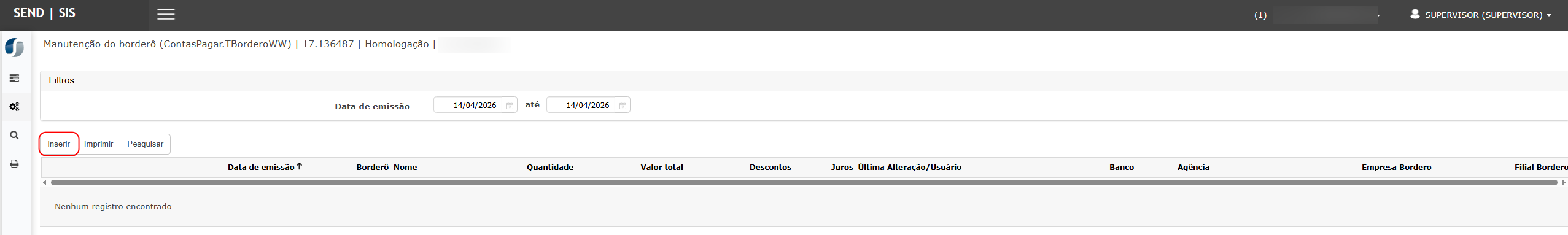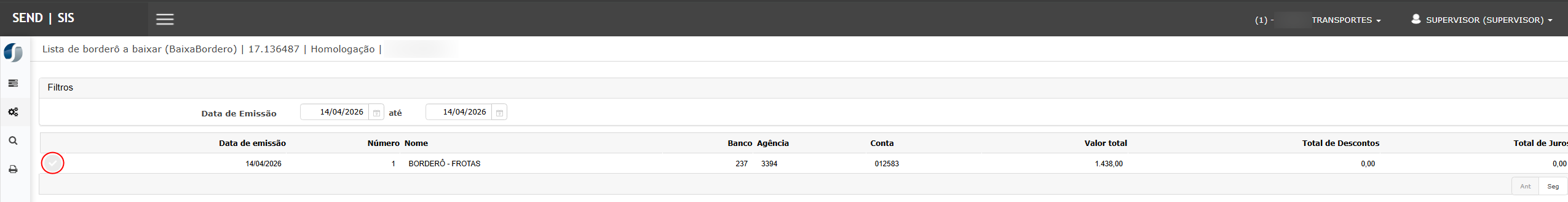 Pesquise pela data de emissão do borderô. Selecione o borderô.