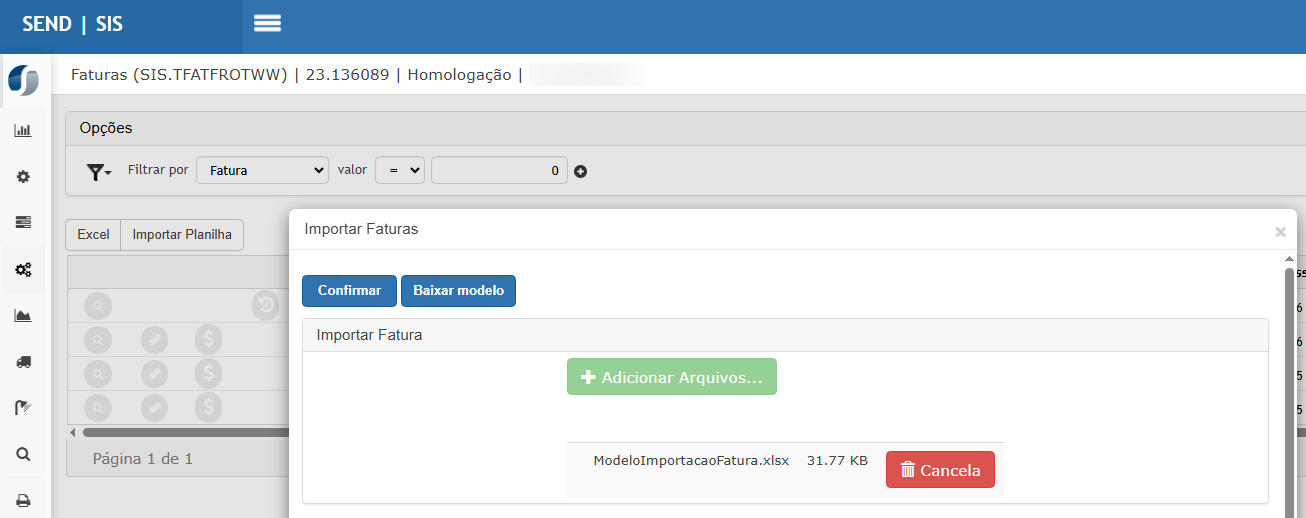 - As faturas importadas por este processo devem ficar identificadas como Importadas por Planilha.