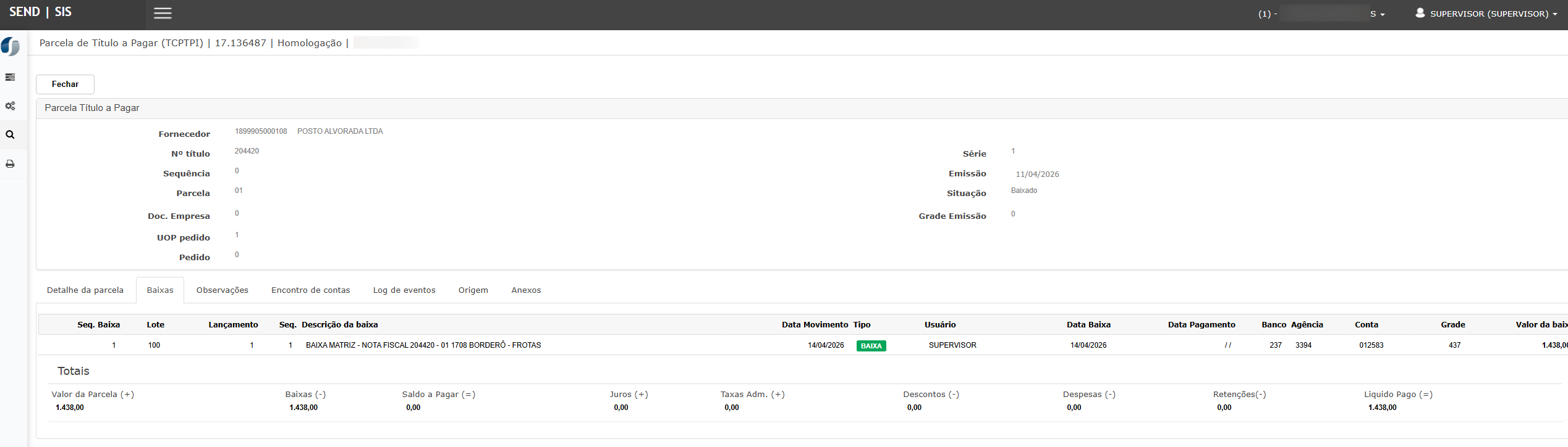 - A situação da fatura no Contas a Pagar deve refletir corretamente a baixa executada.