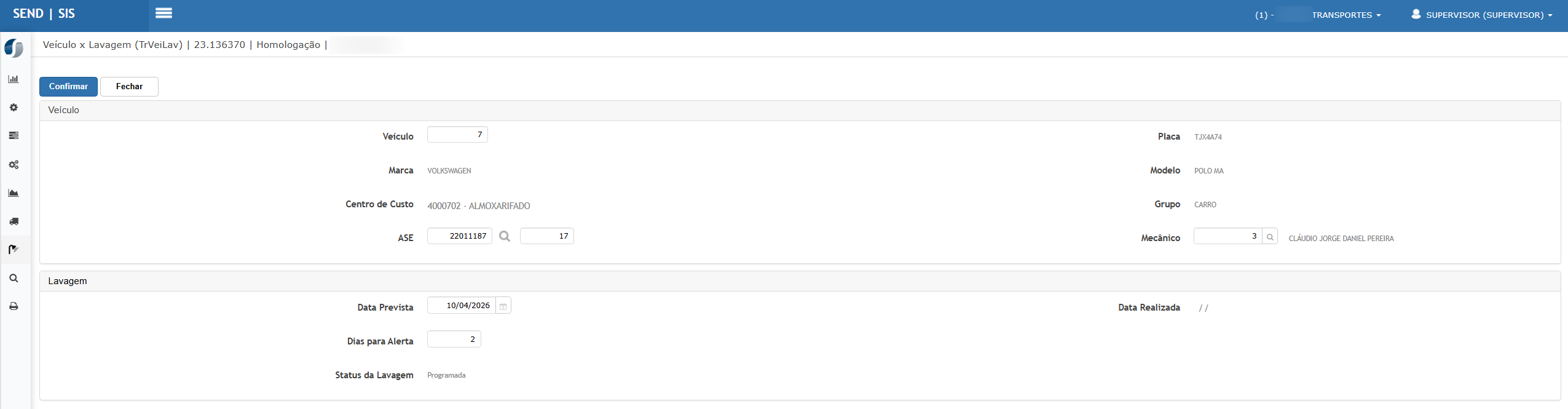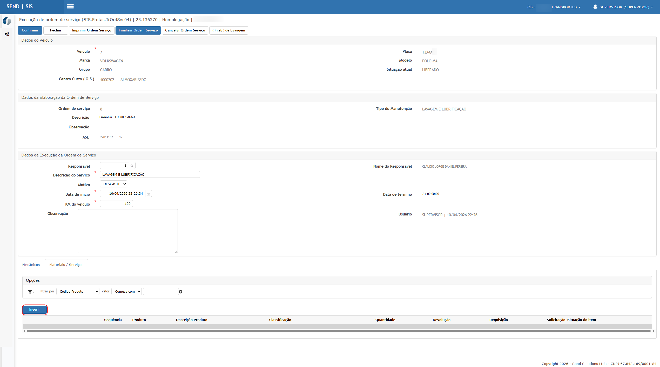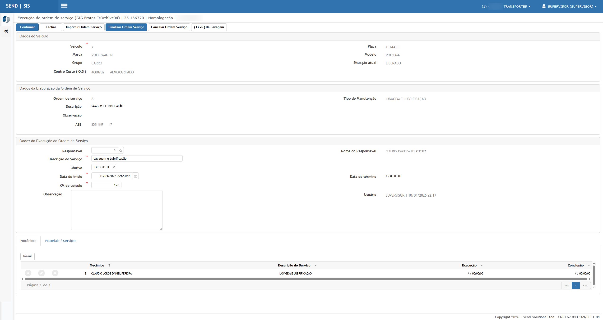 Cenário 07 – Executar OS de Lavagem (FI 26 / Comprovante)