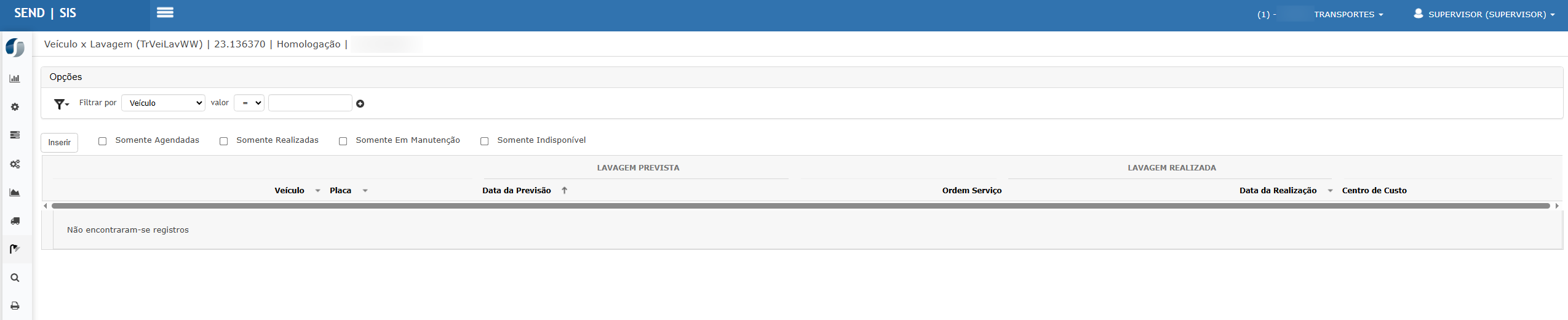 1. Acessar: Controle de Lavagens > Registro de Lavagem