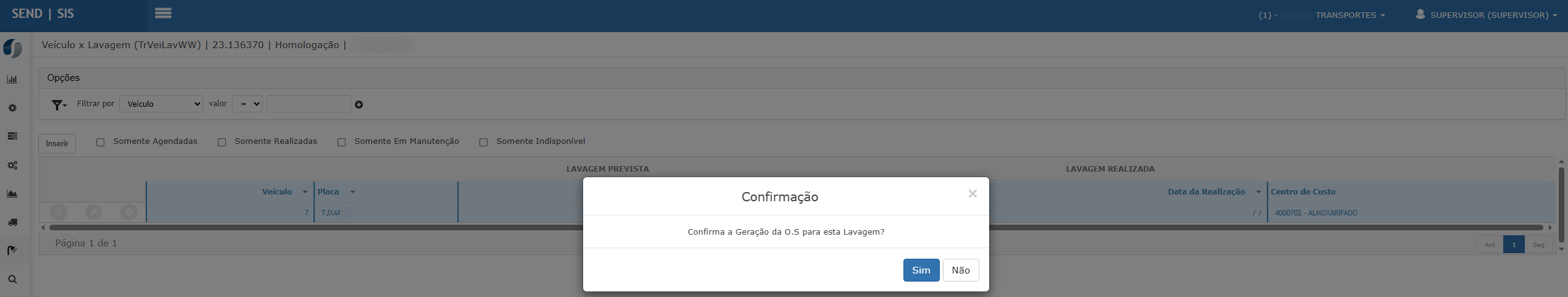 5. Após salvar, clicar na opção para gerar a Ordem de Serviço da lavagem