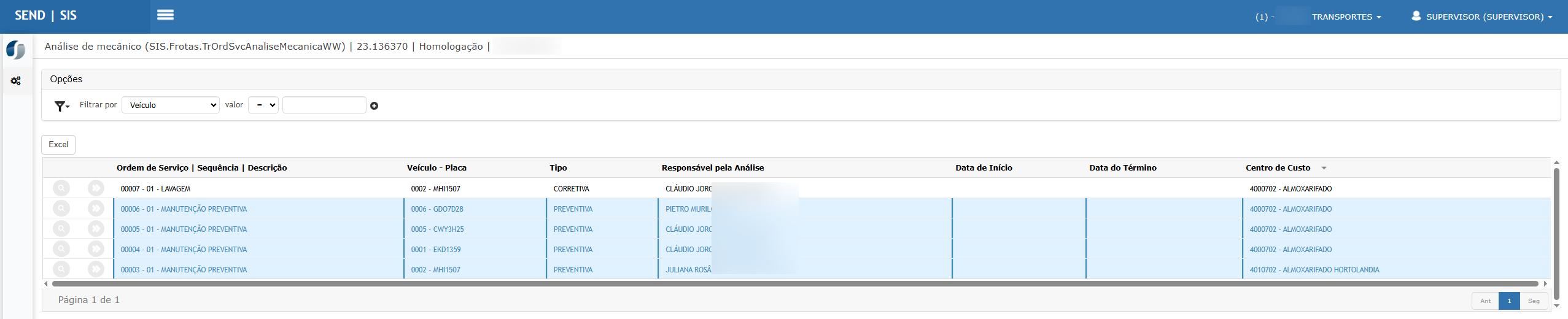 1. Acessar: Manutenção > Ordem de Serviço > Análise Mecânica