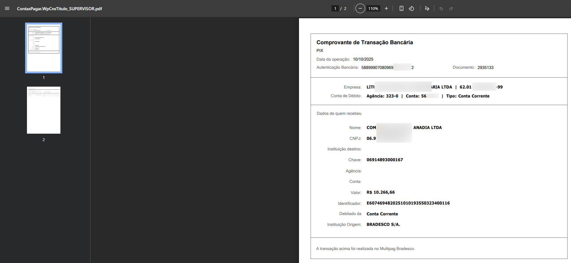 Cenário 07 – Recebimento: exibição de anexos do Contas a Pagar