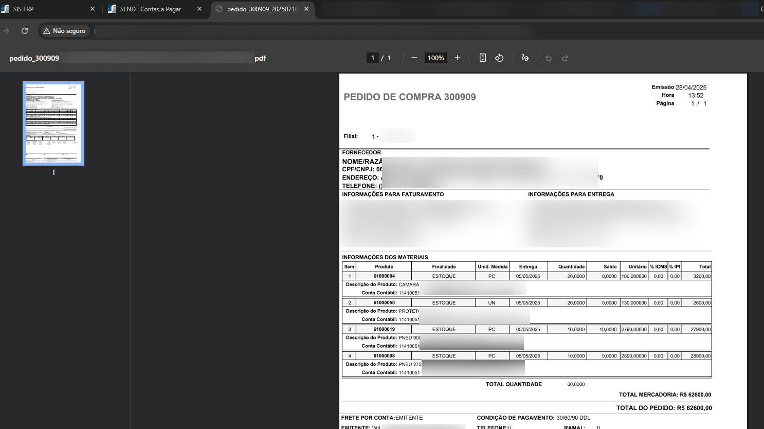 Os anexos gerados/vinculados no Contas a Pagar (comprovantes, e-mail, boleto atualizado, outros) também estejam disponíveis no Recebimento e, quando aplicável, no Compras/origem do pedido/NF.
