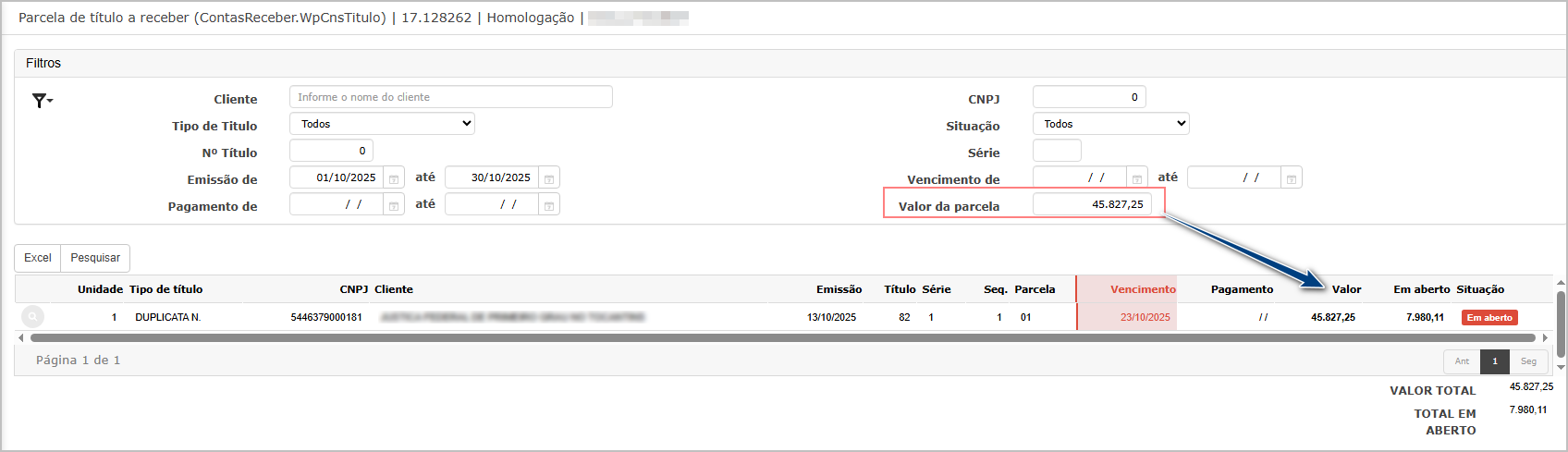 Na tela principal de consulta, note que foi adicionado o filtro valor da parcela.image.png
