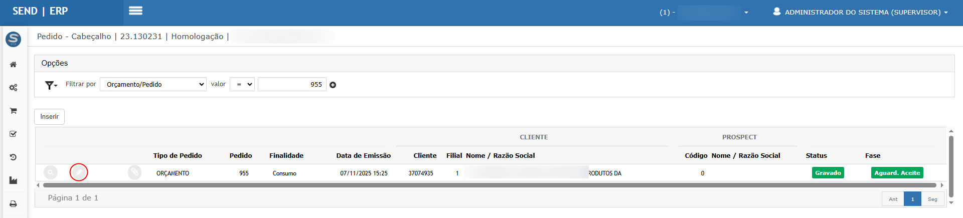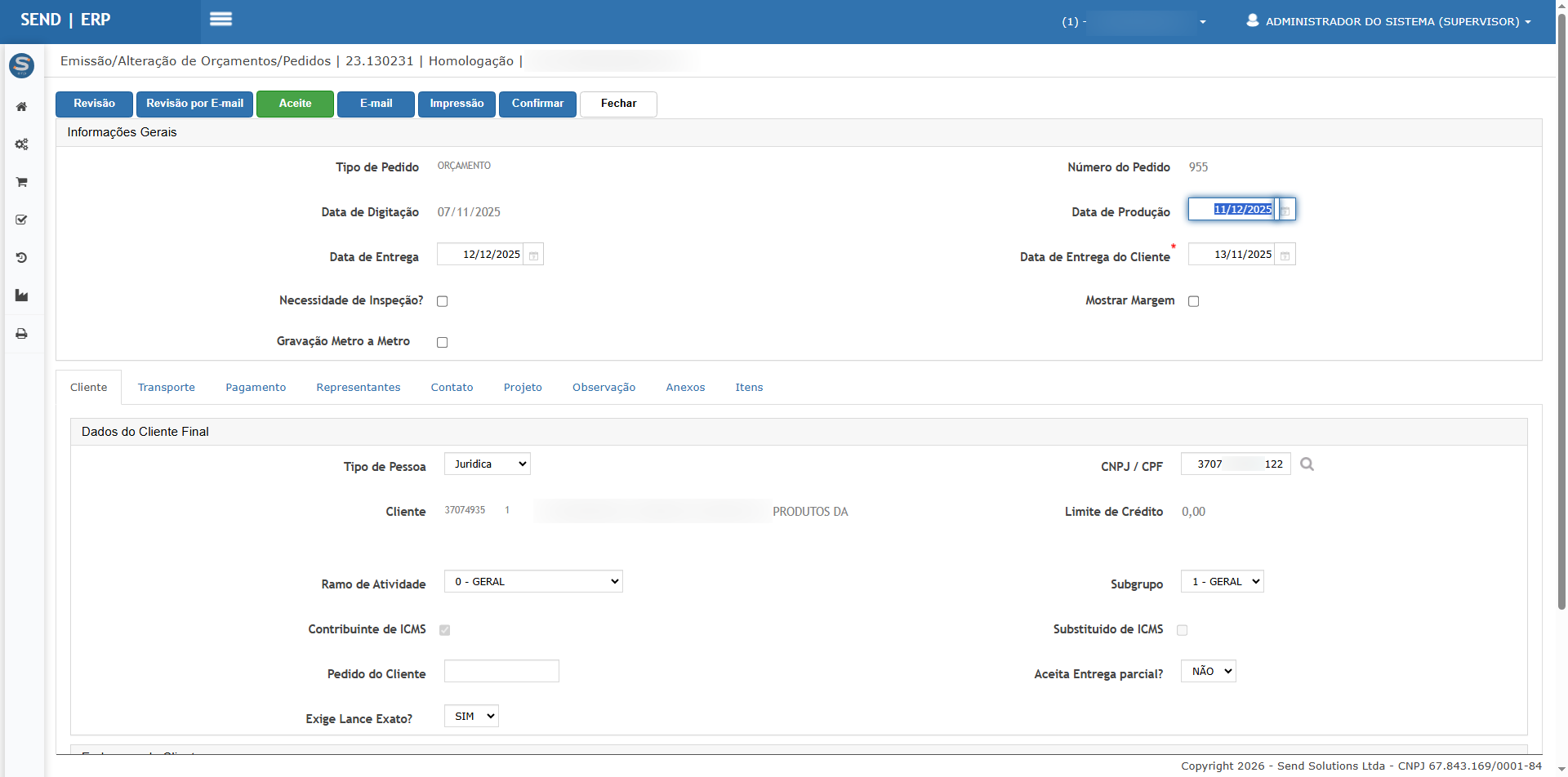 4. Gere/visualize a impressão (PDF/preview) do pedido/proposta.