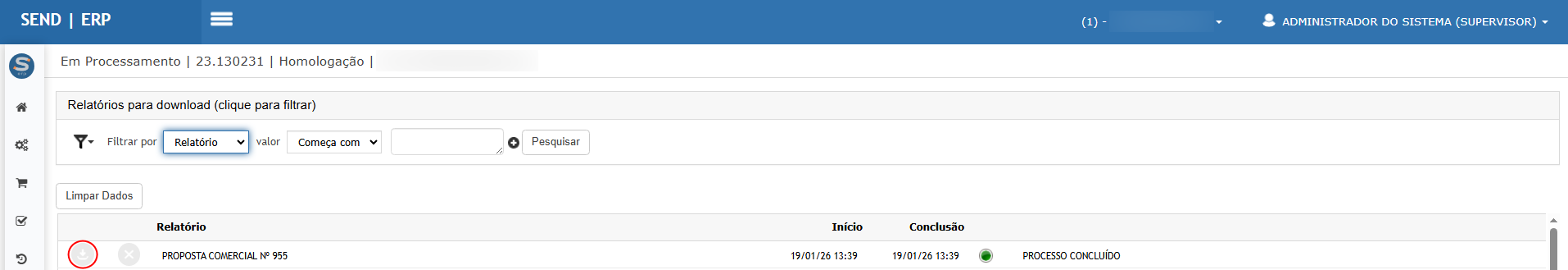 Teste realizado após a atualização