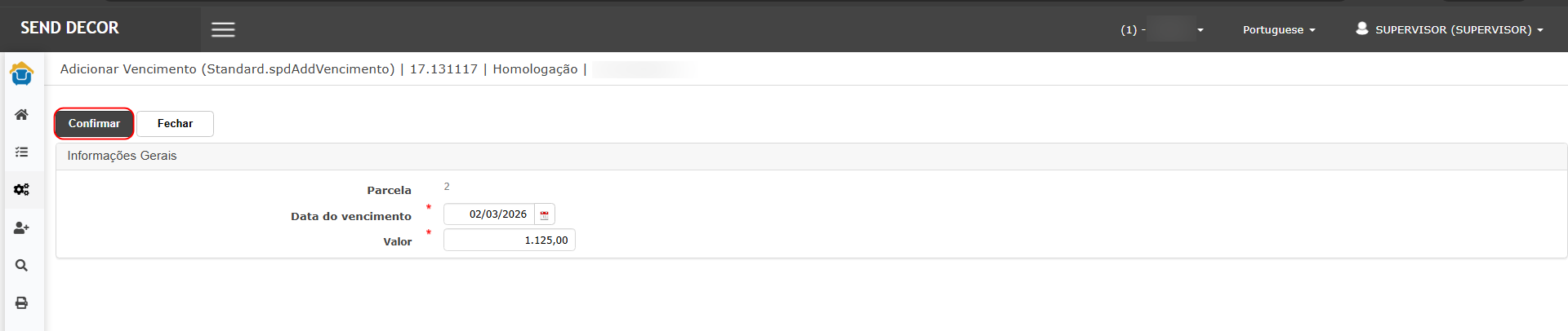 Na confirmação “deseja ajustar as demais parcelas?”, clicar em Não.