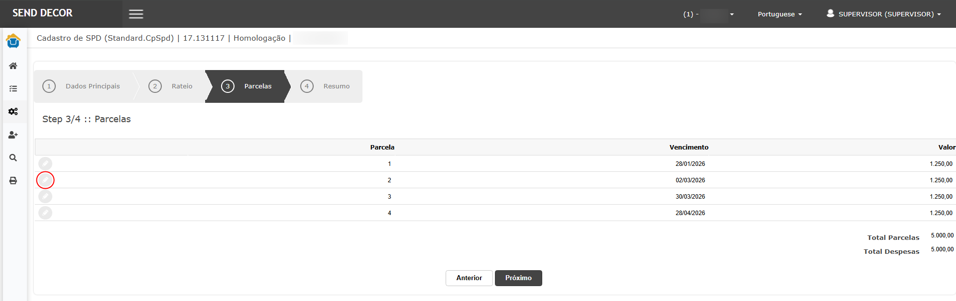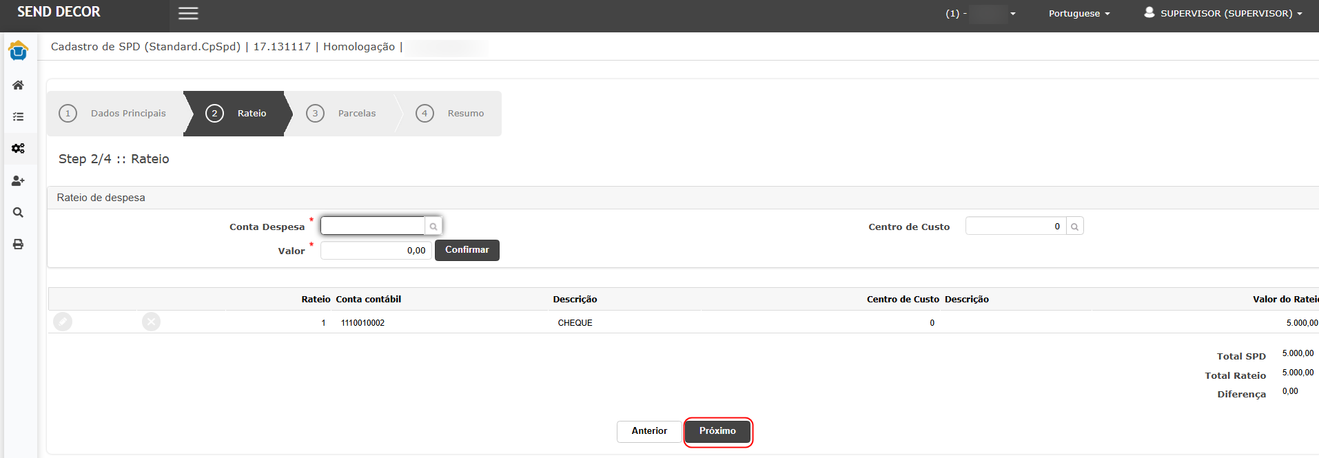 Total do SPD: R$ 5.000,00.