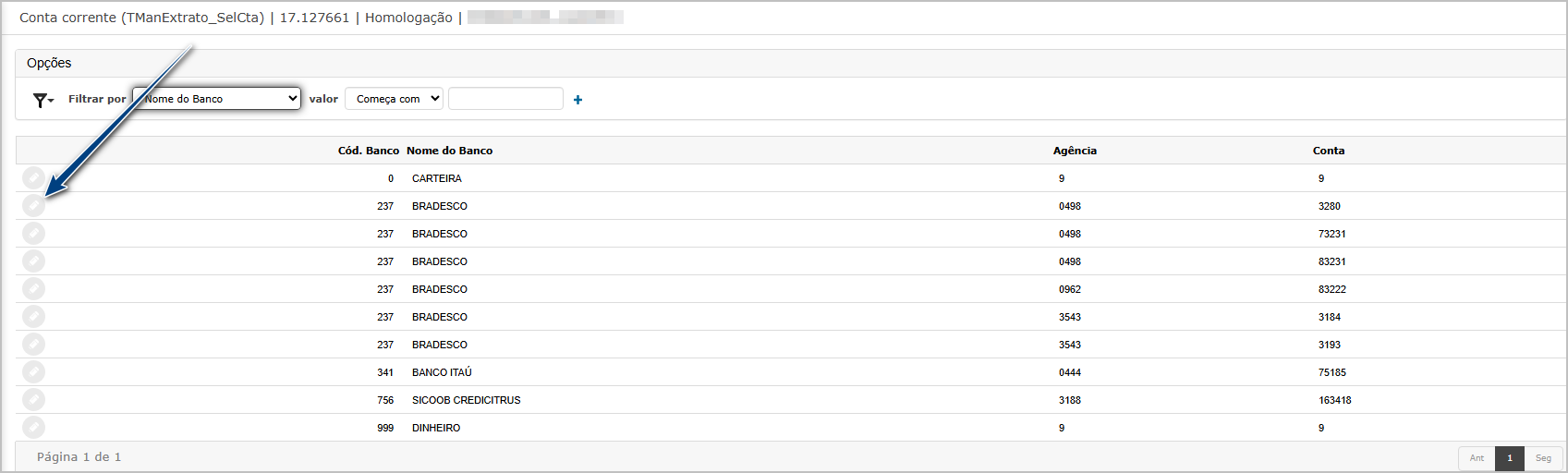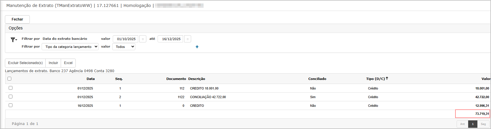 O sistema direcionará para tela da manutenção do extrato, onde é possível verificar o totalizador.