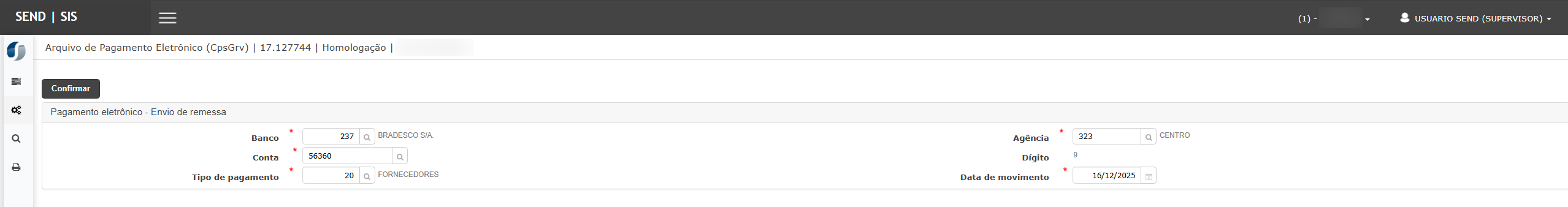 - Acessar Contas a Pagar > Pagamento eletrônicos > Manutenção