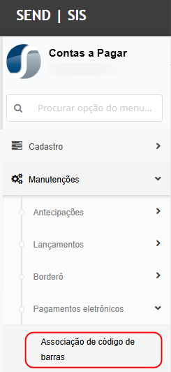 Acessar Contas a Pagar > Pagamentos eletrônicos > Manutenção