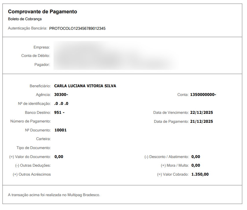 O ERP deve gerar automaticamente o Comprovante de Pagamento.