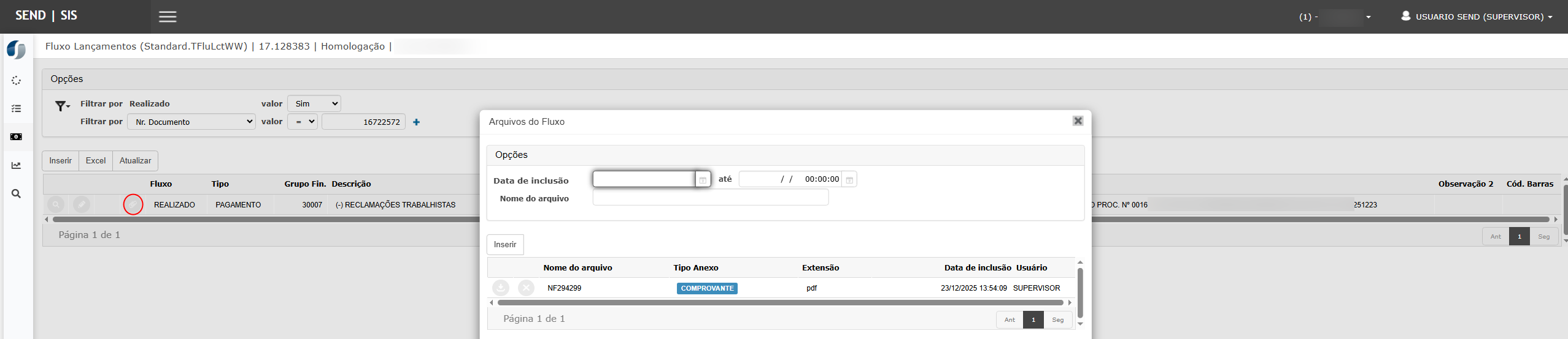 O anexo deve ficar vinculado corretamente ao lançamento do fluxo.