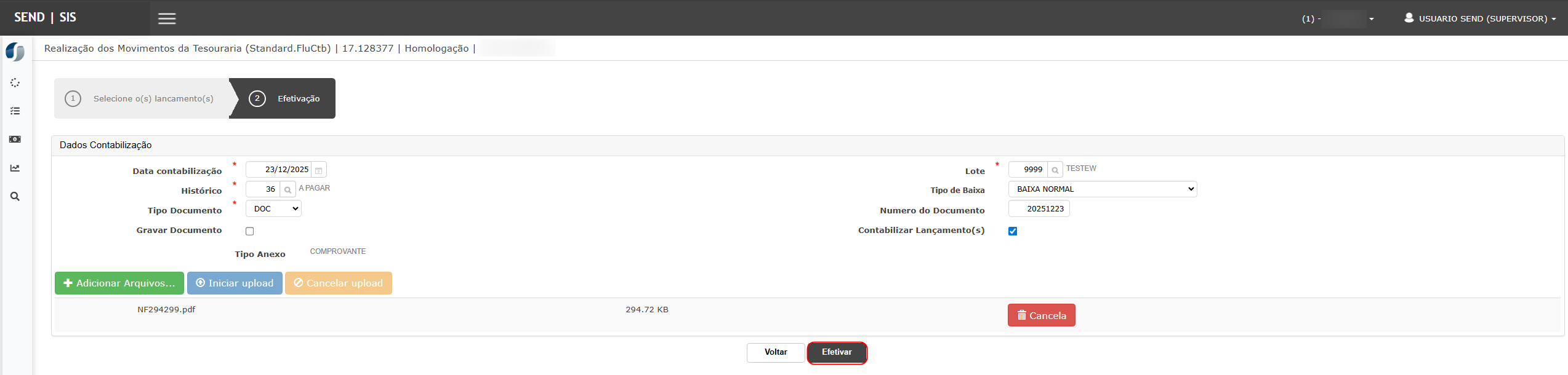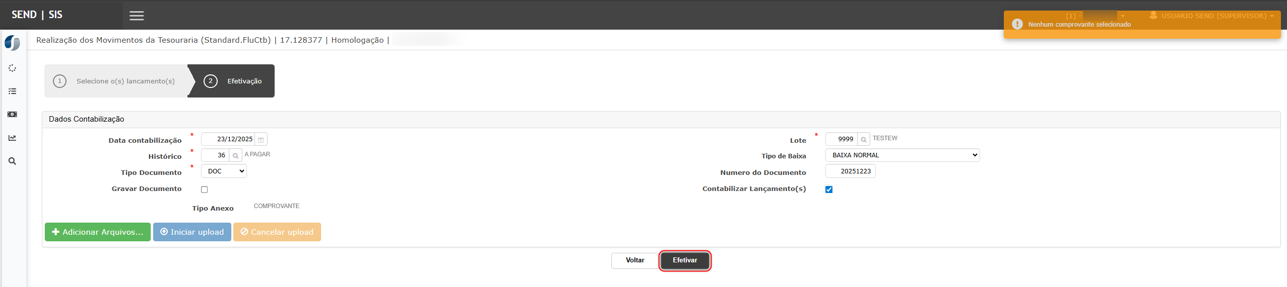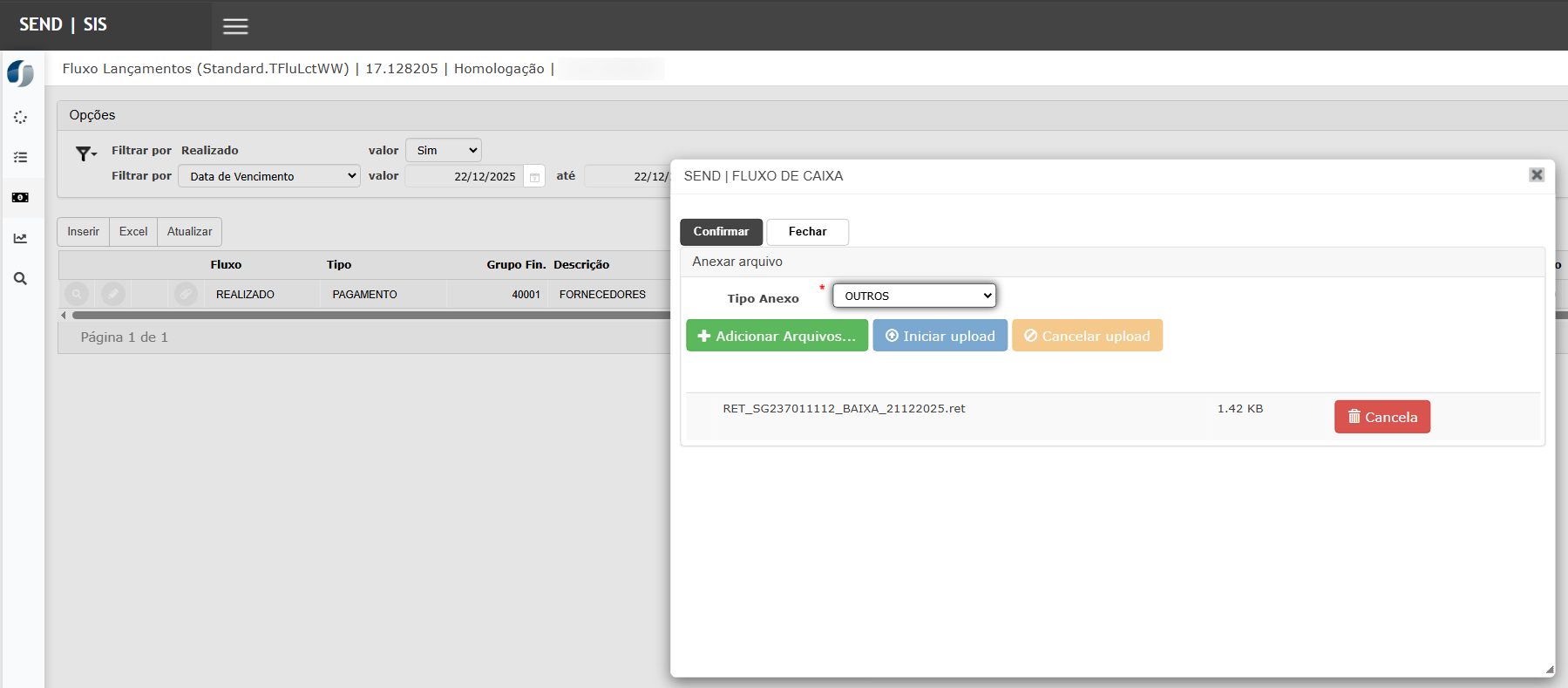 Acessar Fluxo de Caixa > Realização do Fluxo.