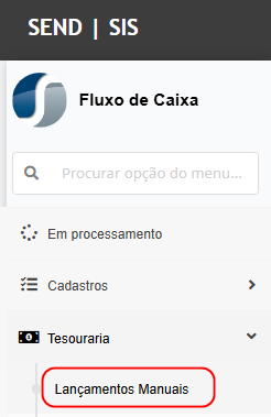 Acessar Fluxo de Caixa > Tesouraria > Lançamentos Manuais.