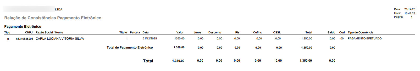 Após o processamento do retorno, acessar o relatório Relação de Consistências – Pagamento Eletrônico.