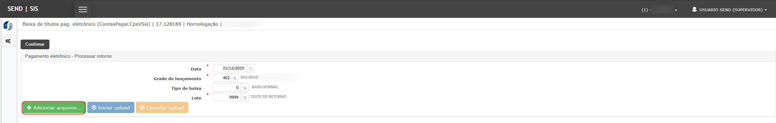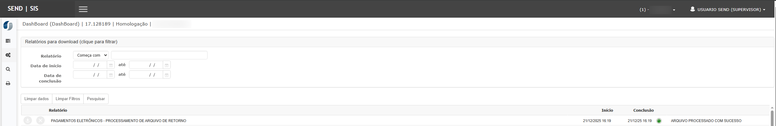 Acessar Contas a Pagar > Manutenções > Pagamentos eletrônicos > Retorno.