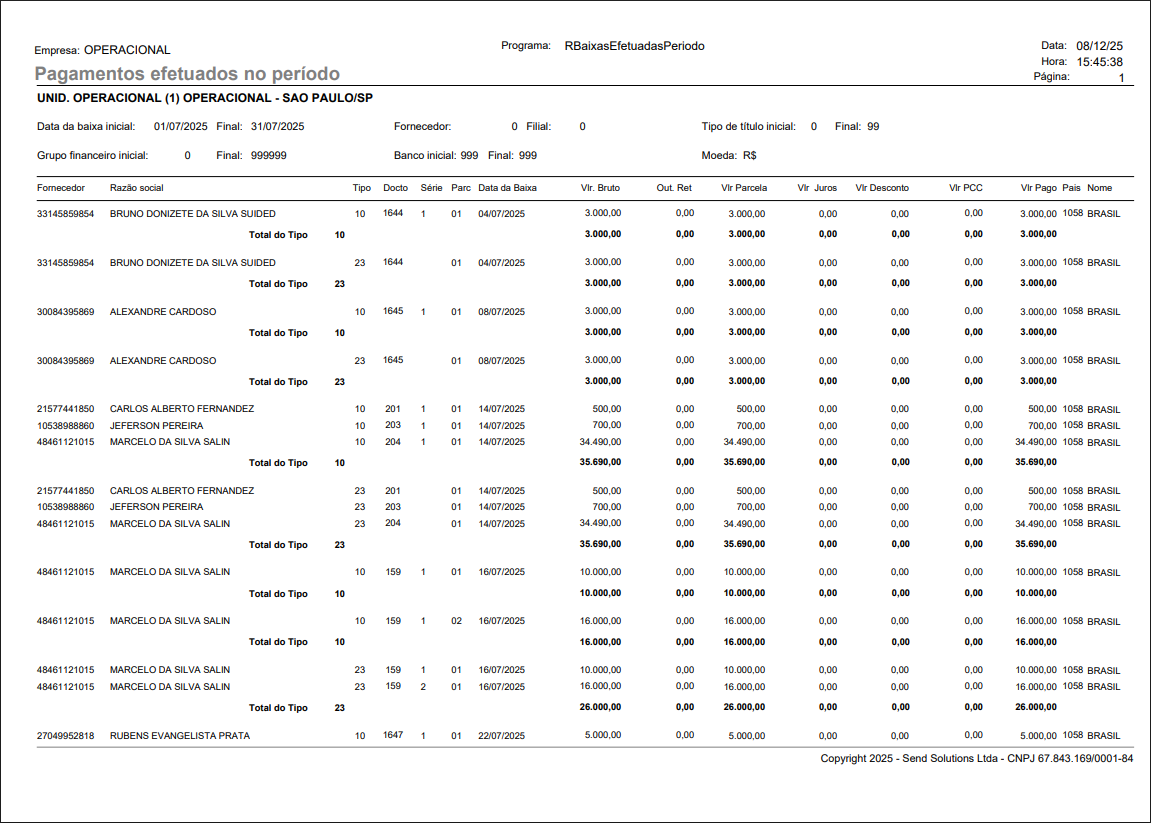 Ao abrir o PDF, deve exibir todos os títulos pagos no período selecionado.