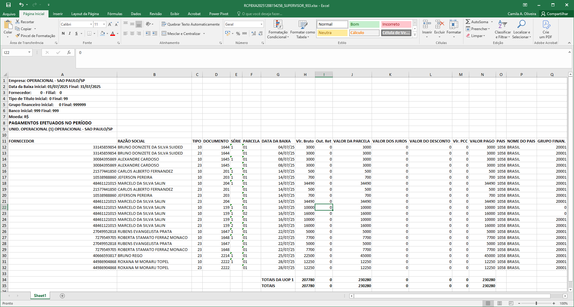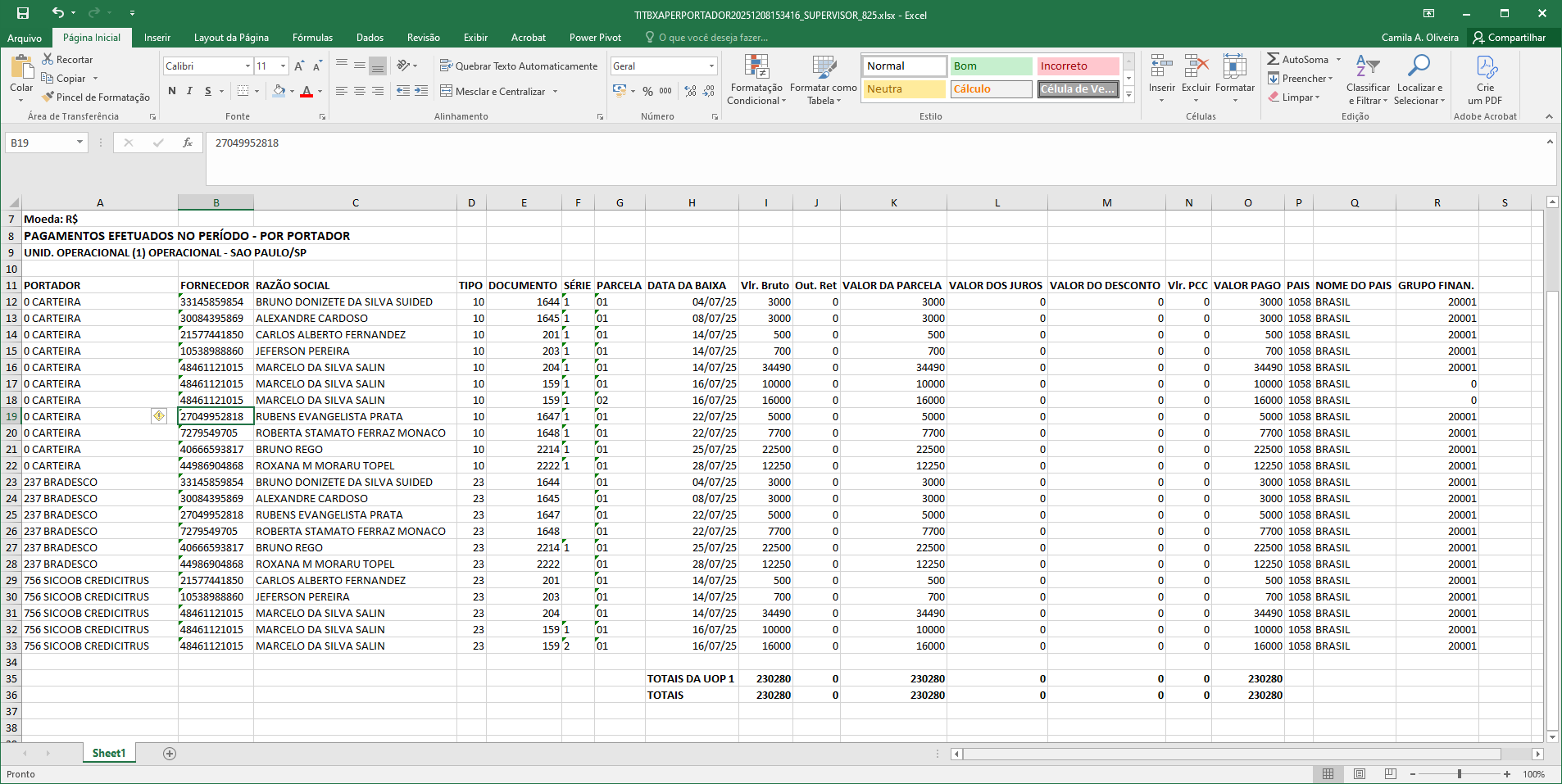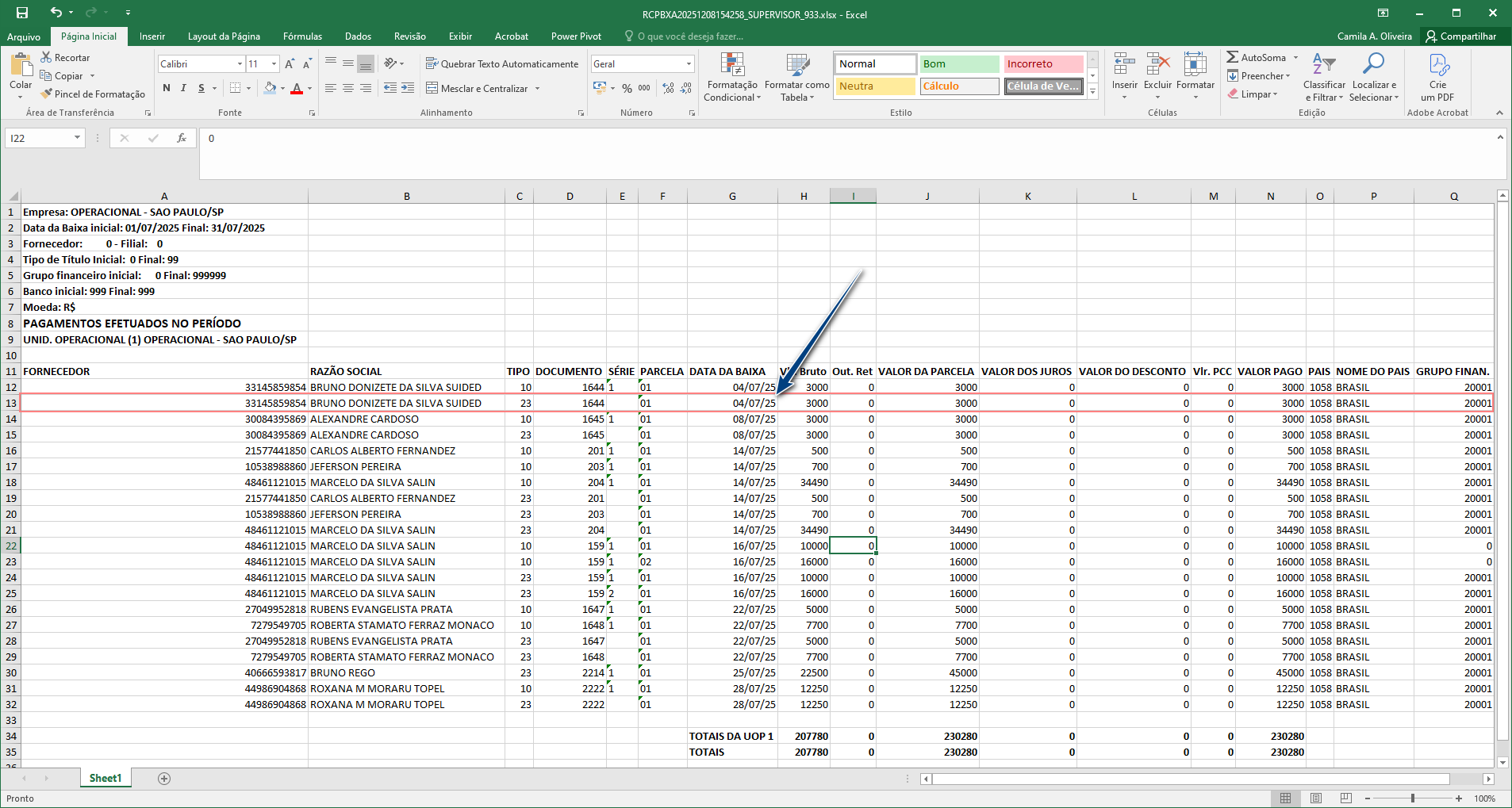 O objetivo desta alteração é corrigir a geração do relatório “Pago por Portador” no formato Excel, que anteriormente travava no processamento e não gerava o arquivo.