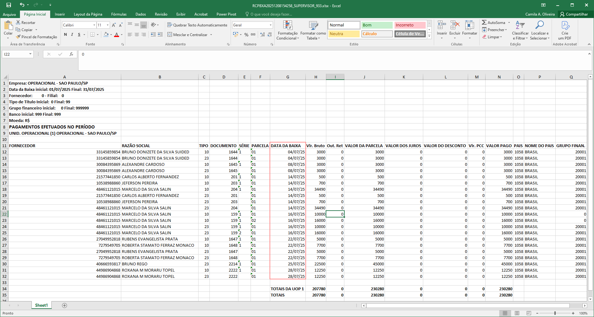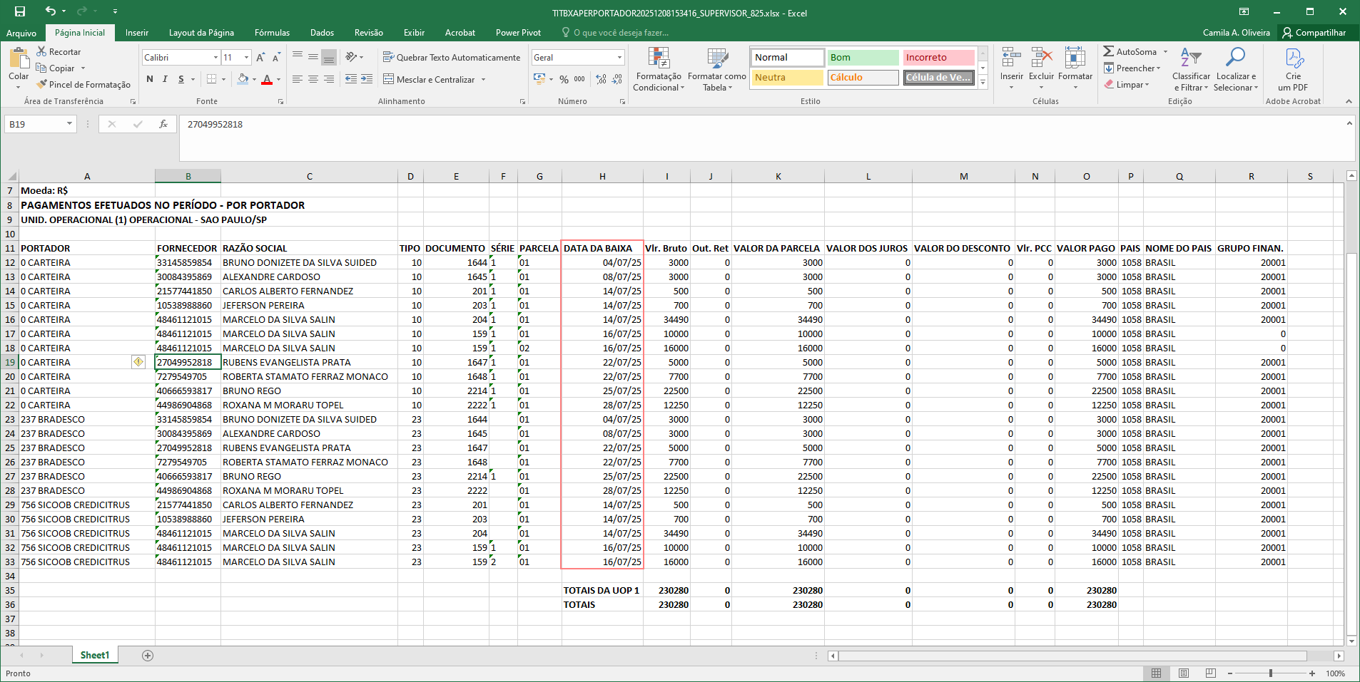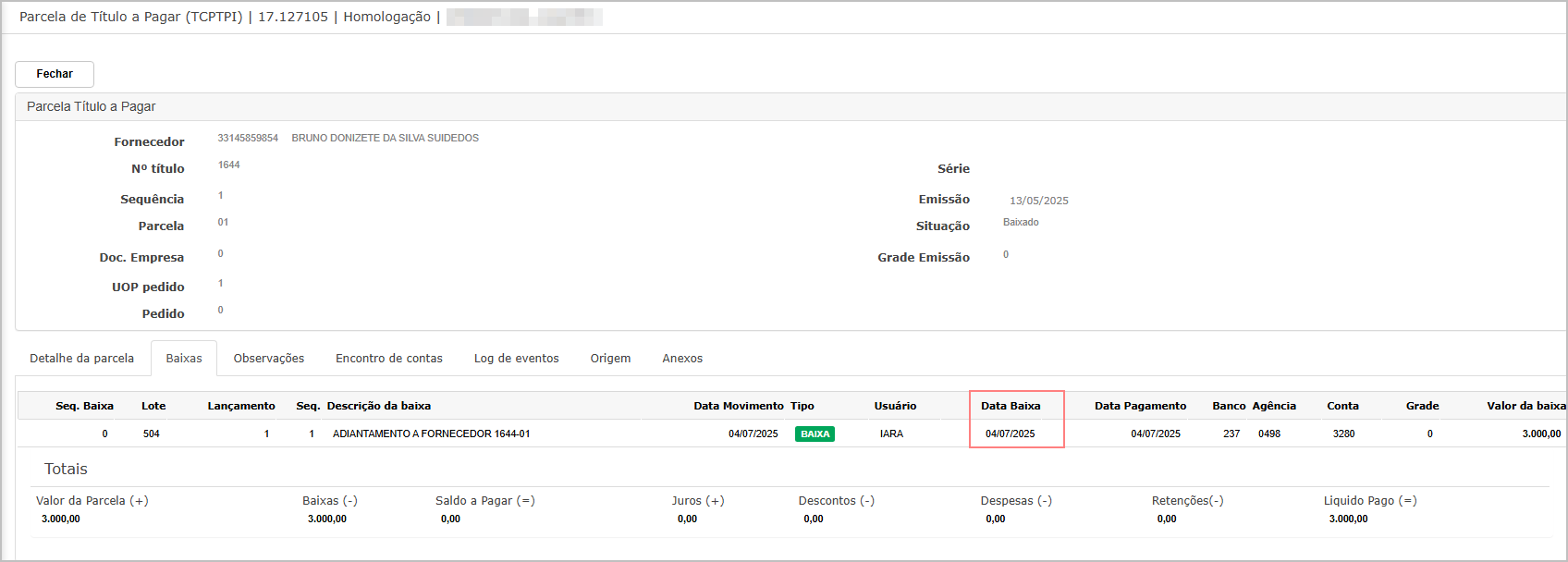 Note que a data de baixa é a mesma apresentando no relatório.